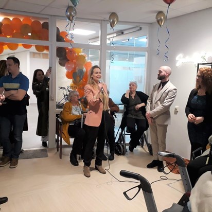 Tijdens de zeer drukbezochte middag nam onder andere Arjan Bandel, lid Raad van Bestuur van Laurens het woord. Ook Judith Tillie, manager Vastgoedsturing bij Woonzorg Nederland en betrokken bij participatie in de buurten en complexen, hield een speech.